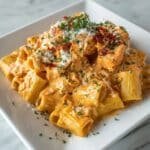 This creamy buffalo chicken pasta is a flavorful and comforting dish combining tender shredded chicken, spicy buffalo sauce, and cheesy goodness with a hint of ranch. Perfect for a quick weeknight dinner or game day feast.