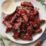 Crispy and flavorful Gochujang Chicken Tenders baked to perfection and coated in a spicy, buttery homemade Gochujang sauce. These tenders make a perfect appetizer, snack, or main course and are garnished with sesame seeds for an extra touch of authenticity.